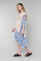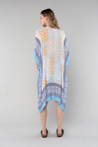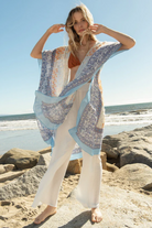 Get ready to embrace the laid-back vibes of the beach with our dreamy mid-length bohemian kimono. Designed in a mixed floral border print, this kimono is perfect for adding a touch of bohemian charm to your spring and summer outfits. The half-length kimono sleeves and open front provide a comfortable and relaxed fit, while the lightweight and flowy fabric is perfect for those warm beach days.