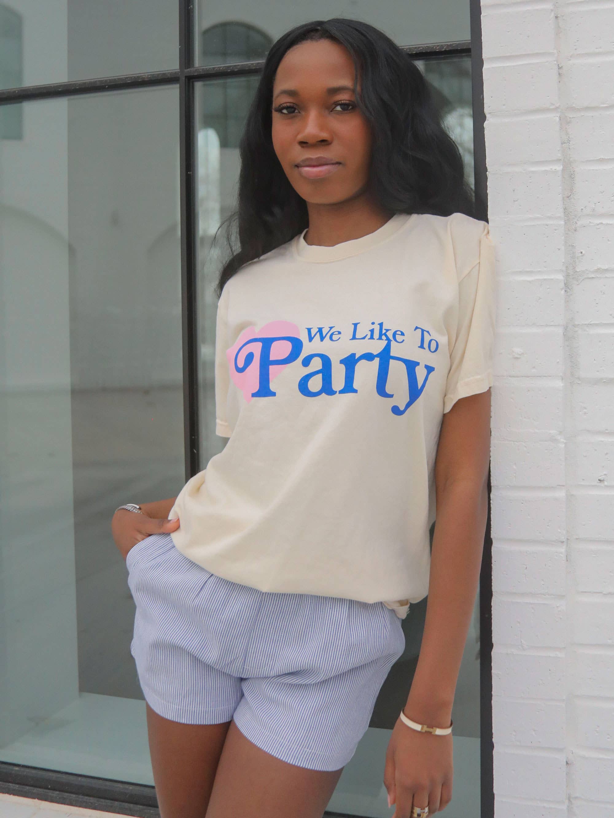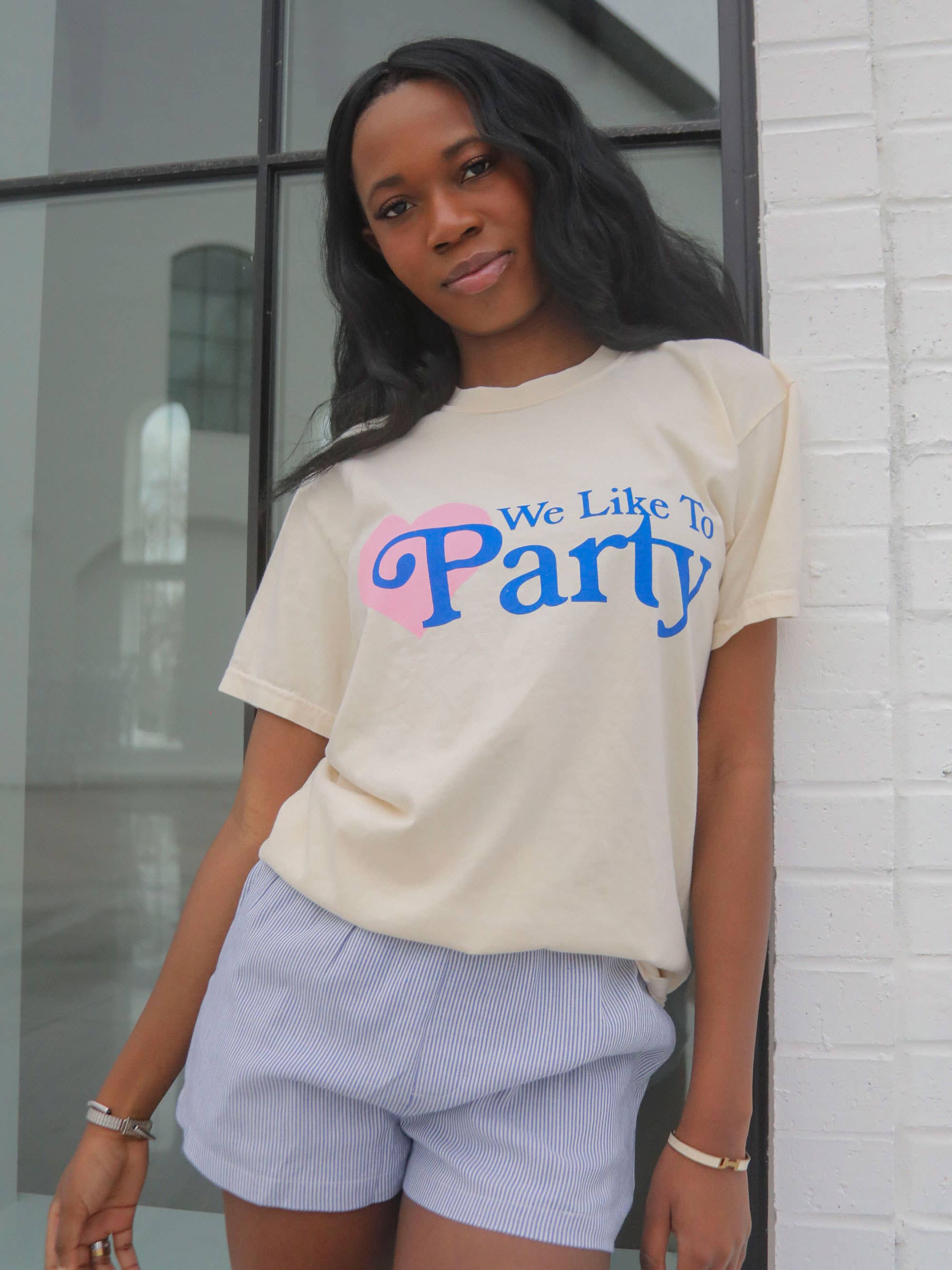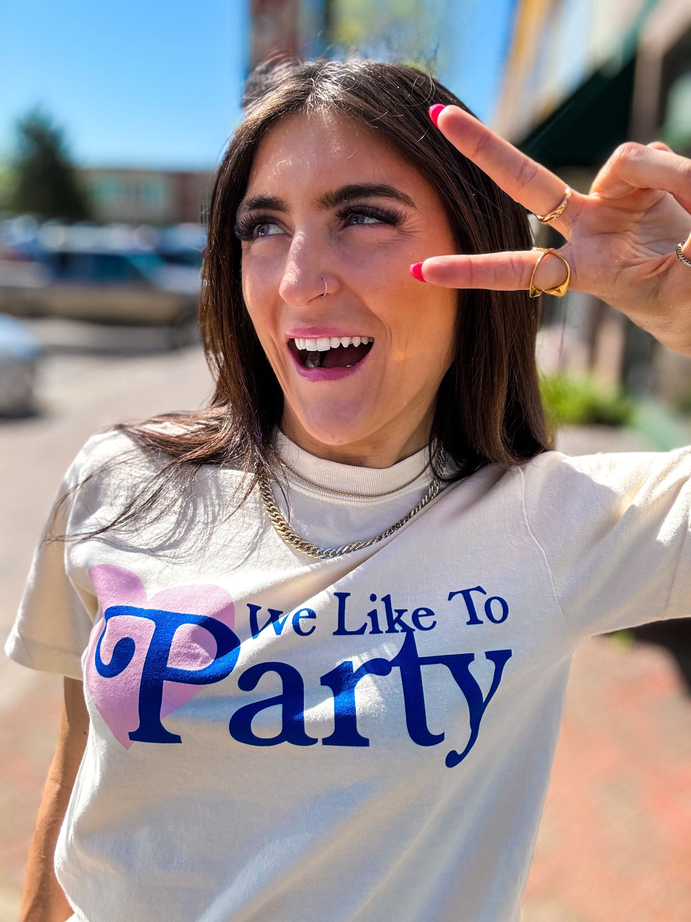 have your girls match you with this tee! who doesn't love a little party with the girl of the main hour?! this natural colored t-shirt features a royal blue font with a bubble gum pink heart that your girls will love!