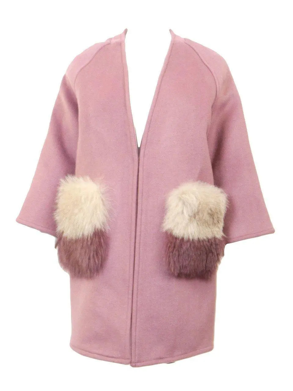 This Wool and cashmere Prada copy jacket comes with real fox fur pockets in black and mauve