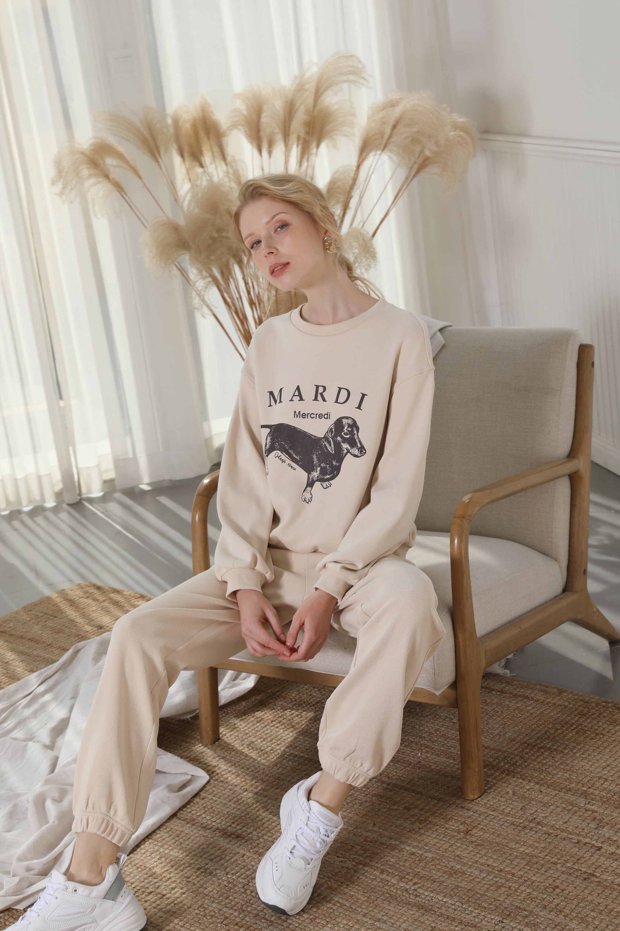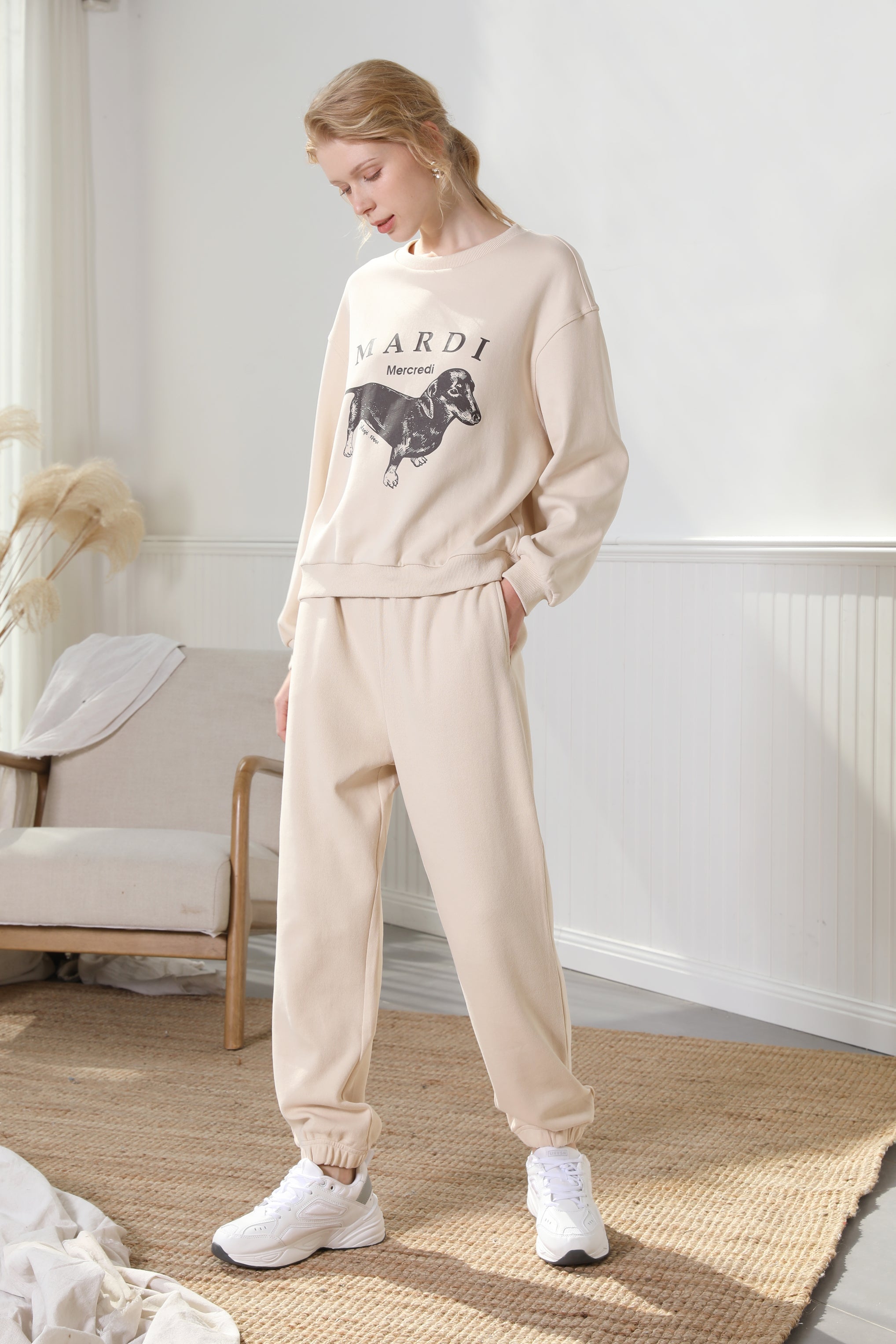 - Comes in a set with High Waisted Sweatpants Creamy Beige