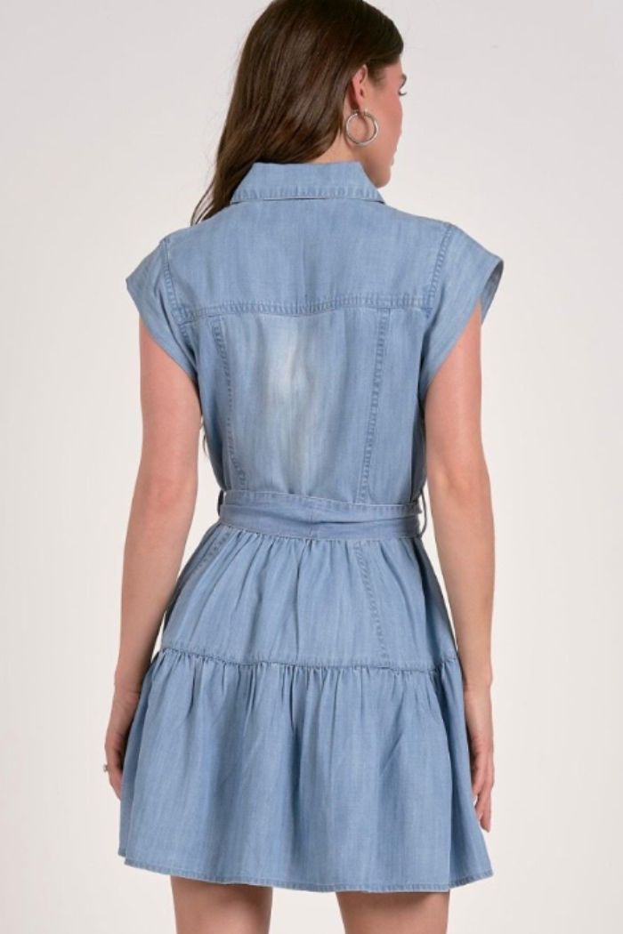 This super cute denim dress is the perfect addition to your closet this spring. With a cool denim material and a lovely fit, this dress is the next thing you need in your life.