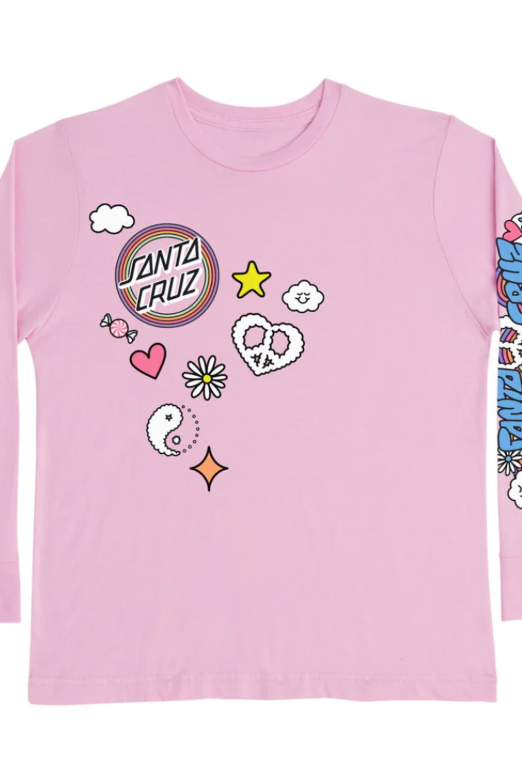 Stand out in the latest girls t-shirts and apparel from Santa Cruz Skateboards. The Santa Cruz SC Whimsical girls regular fit, long-sleeve t-shirt features large front and left sleeve SC Whimsical logos printed in soft hand ink. Santa Cruz has been manufacturing the best skateboards and apparel since 1973. Innovative skateboards and artwork from the beginning 'til the end.