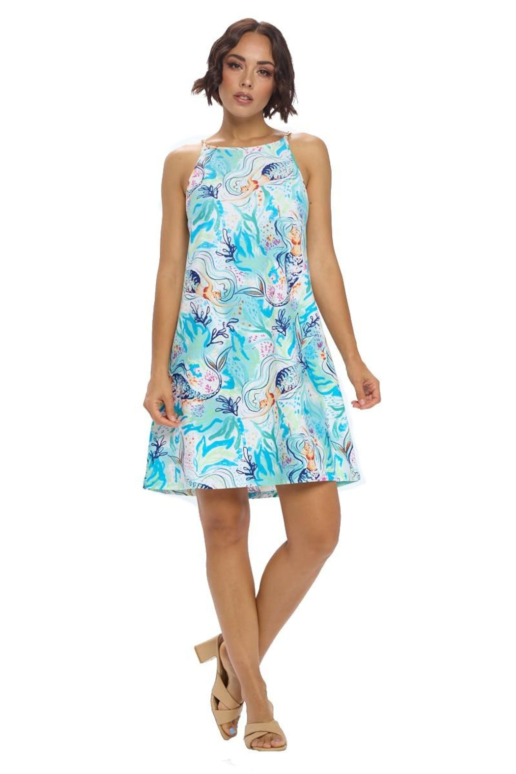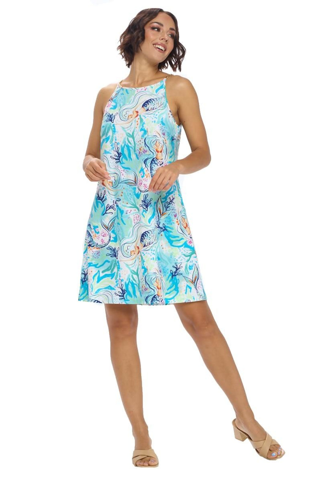 Knee Length A-Line Dress With Chan Straps, Model In Size Small