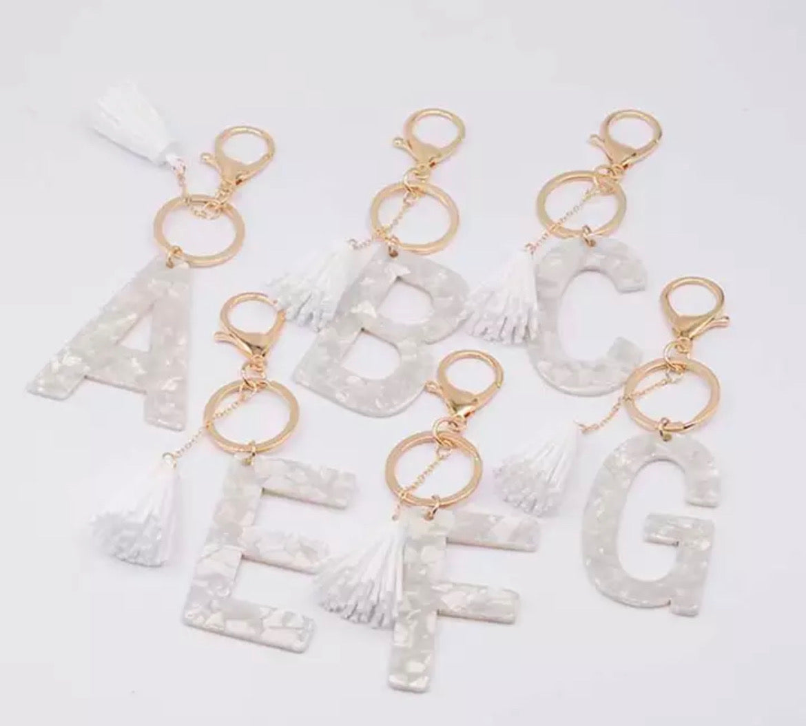 White Marbled Initial Key Chain w/ Tassel