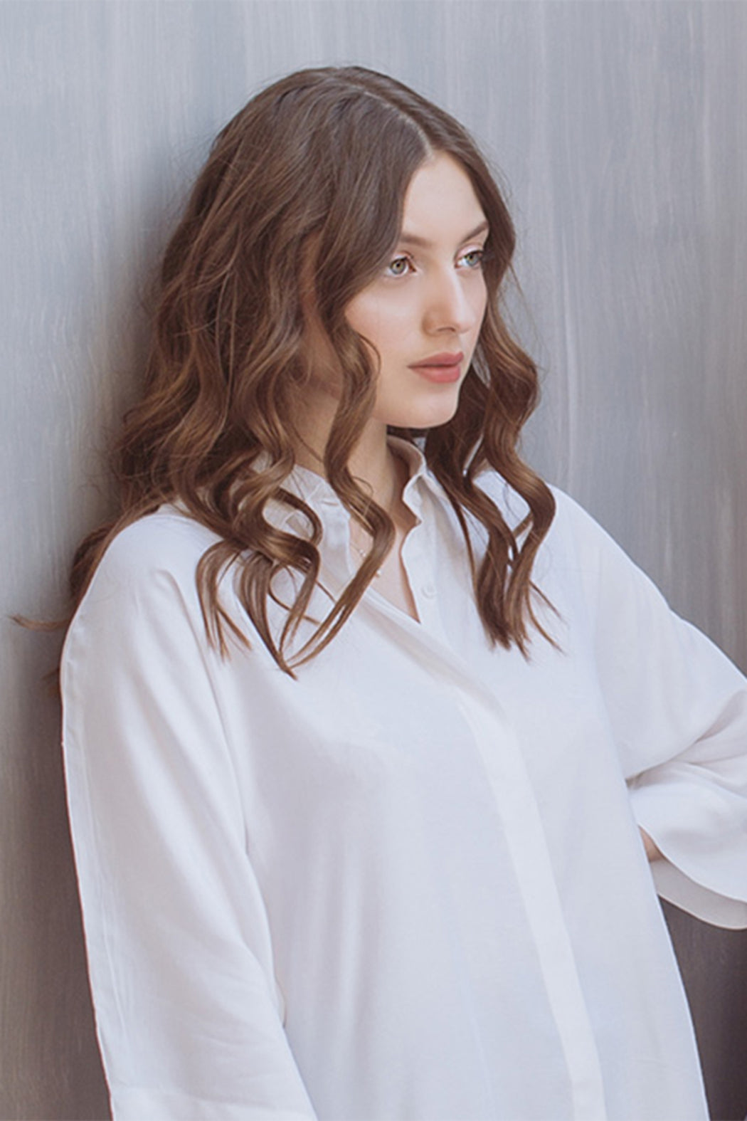 WHITE PURE CHARMEUSE SILK SHIRT
