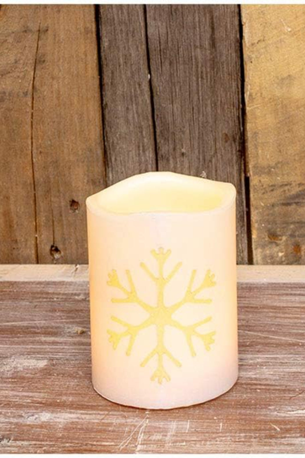 White Snowflake Short LED Pillar Candle