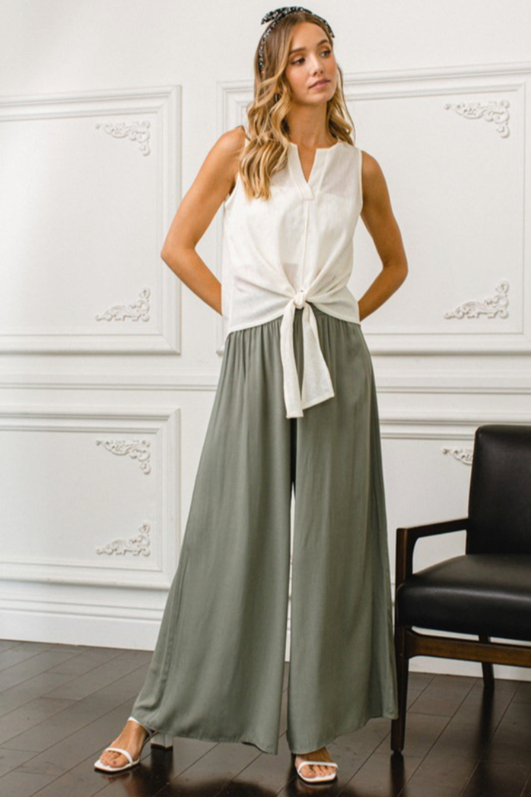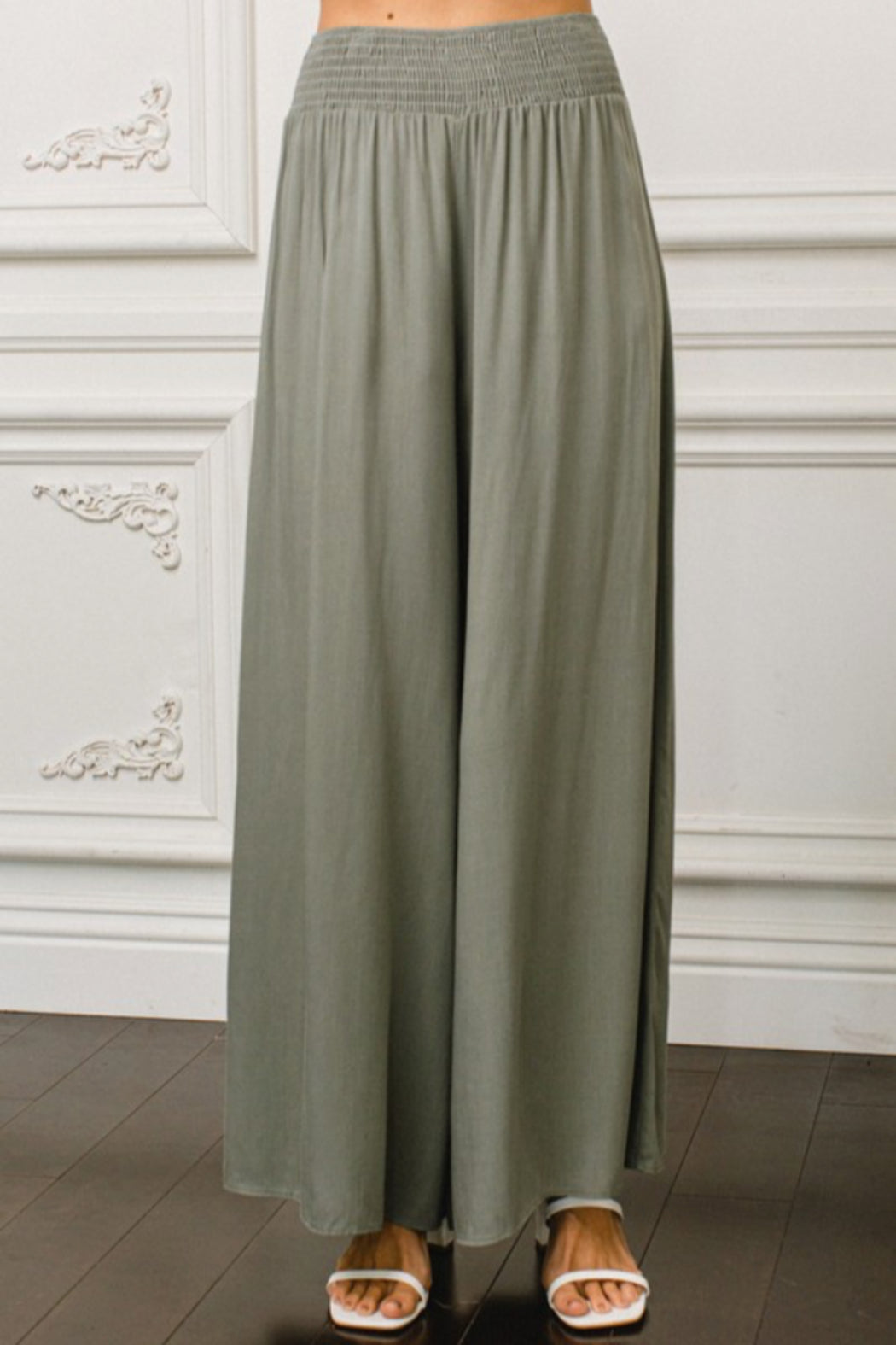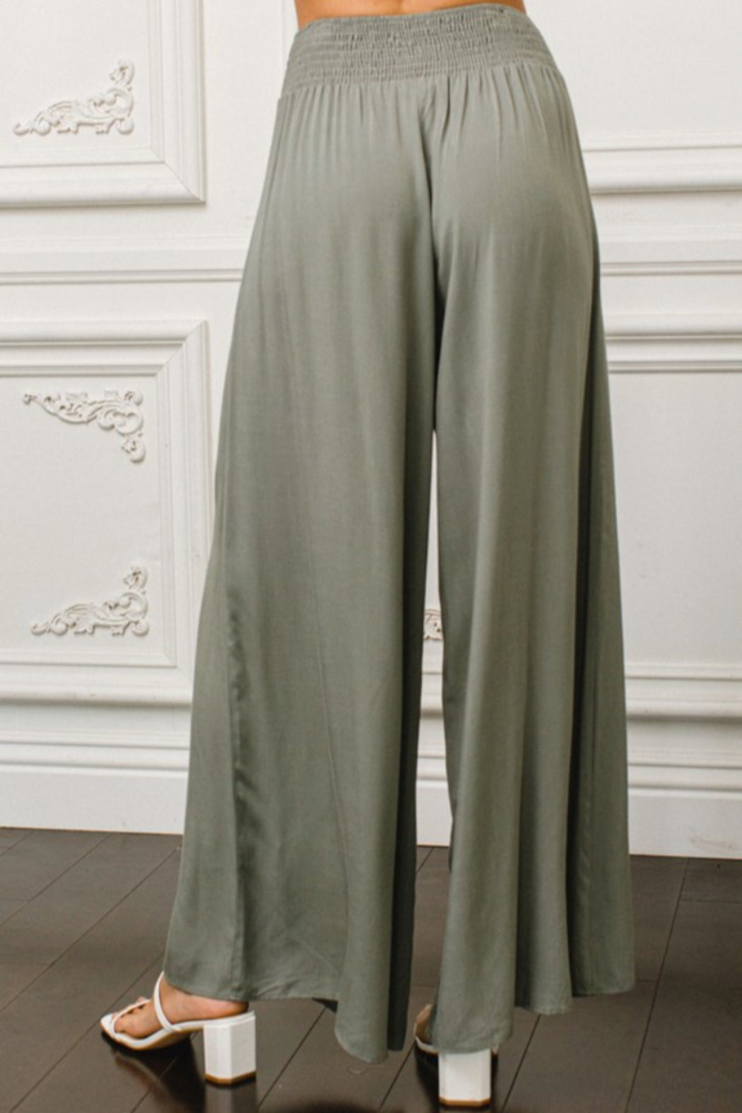 These wide leg pants feature a textured fabric, high waist and smocked waist. Pairs great with your favorite t-shirt or tank top!