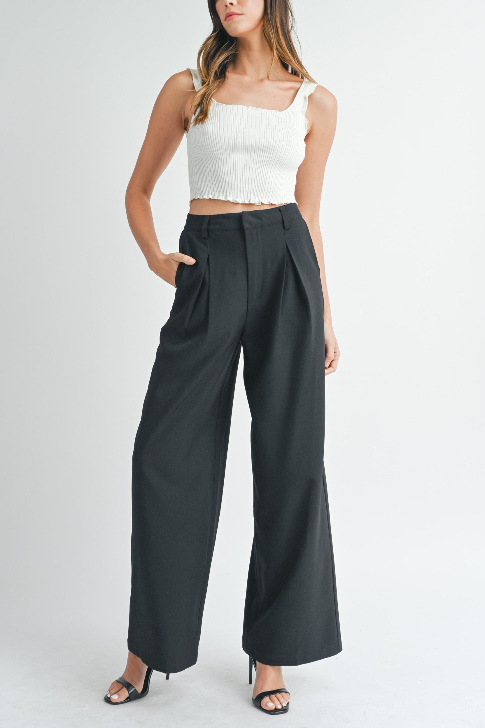 These Wide Leg Trouser Pants provide a modern and sophisticated look, perfect for any formal or professional setting. With their wide leg design, they offer a comfortable and flattering fit that elongates the legs. Elevate your wardrobe with these high-quality dress pants.