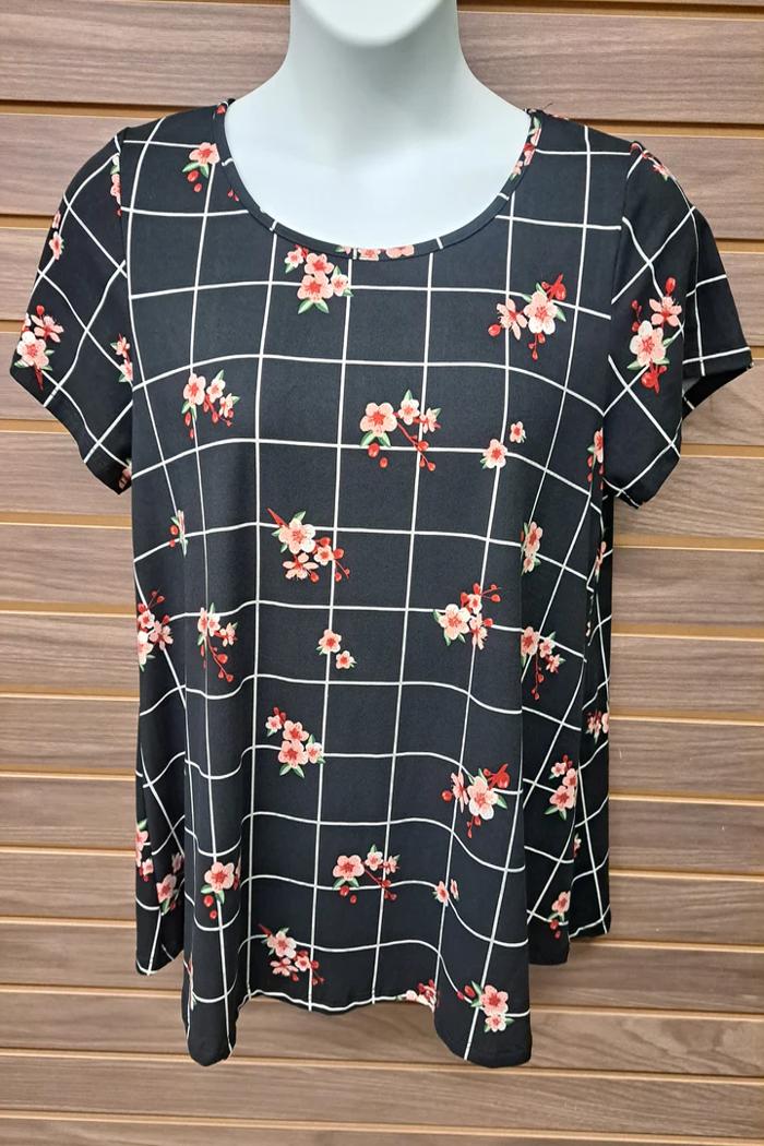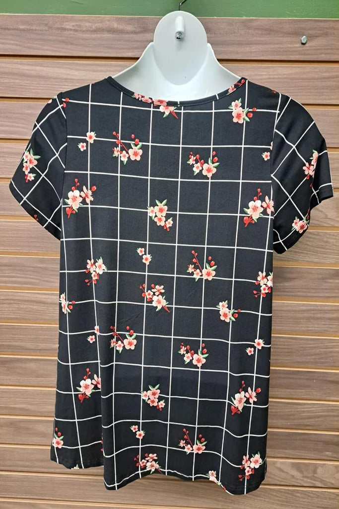 Windowpane Floral Design Tee