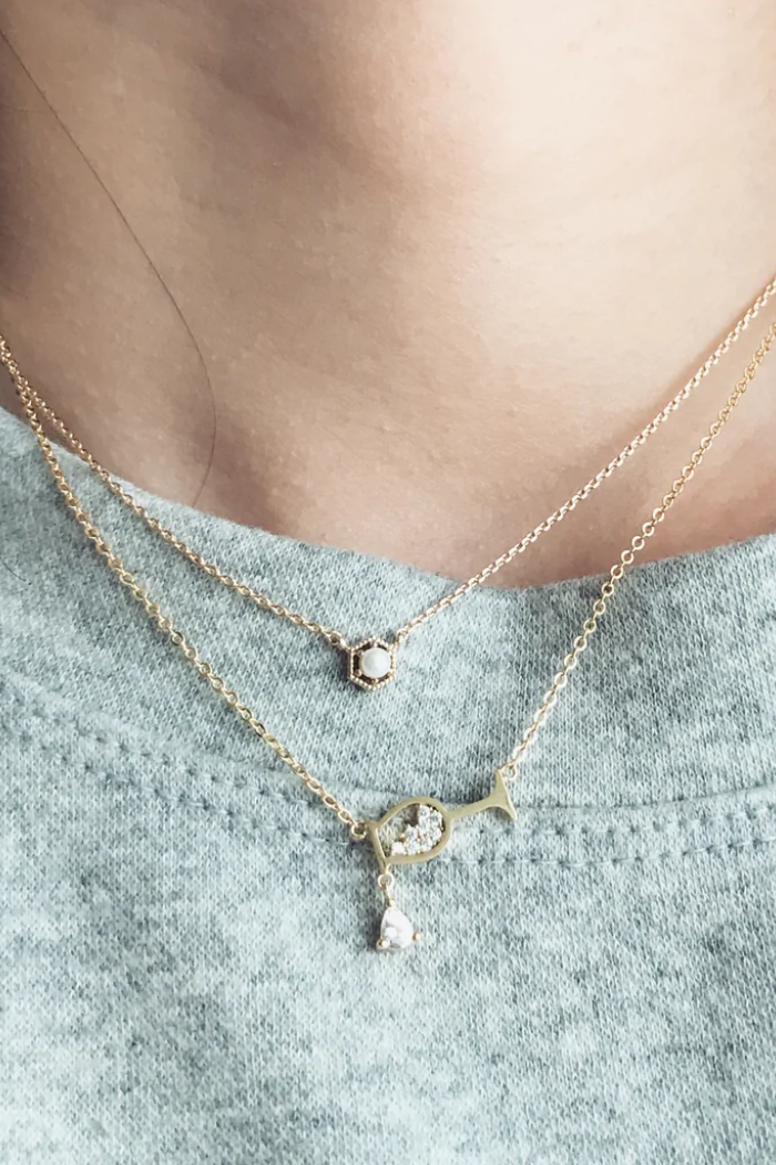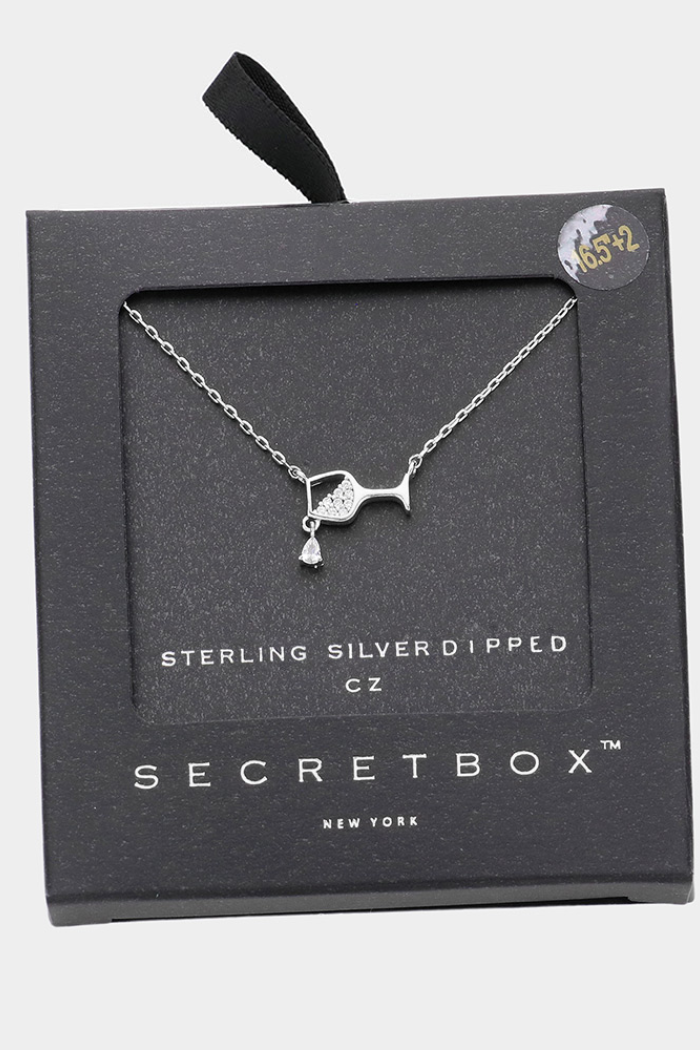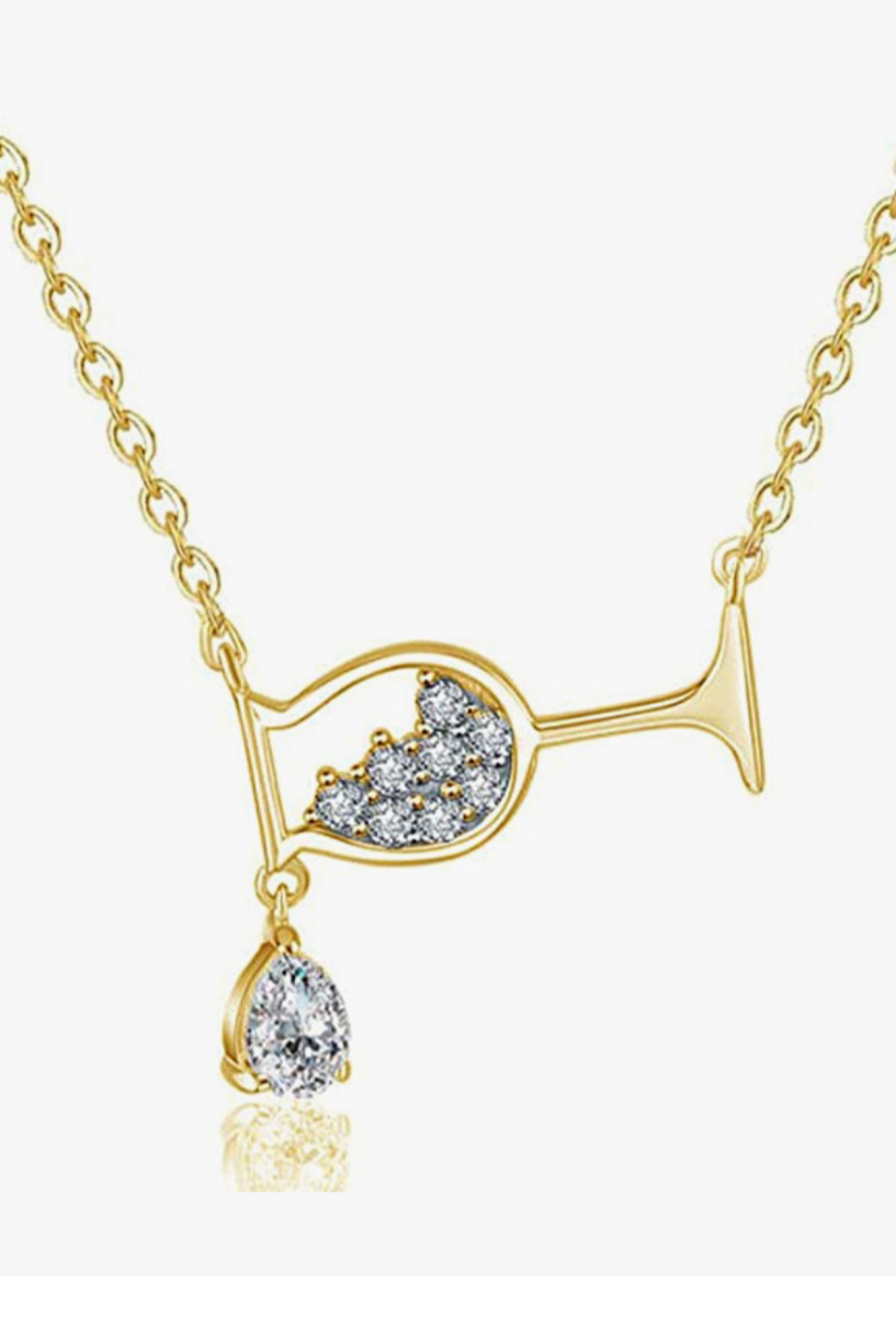 18K gold dipped Cubic Zirconia Wine Glass with Pear shape dangle.16” plus 2 inch extender