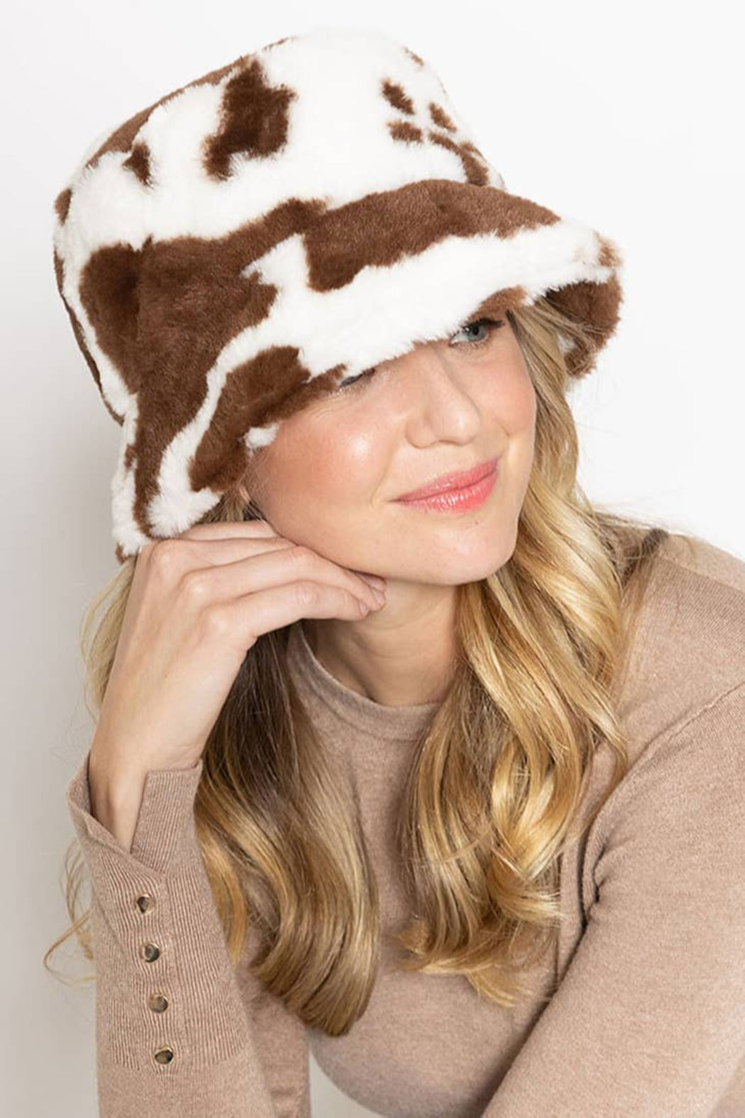 Winter Cow Print Faux Fur Fluffy Bucket Hat
