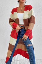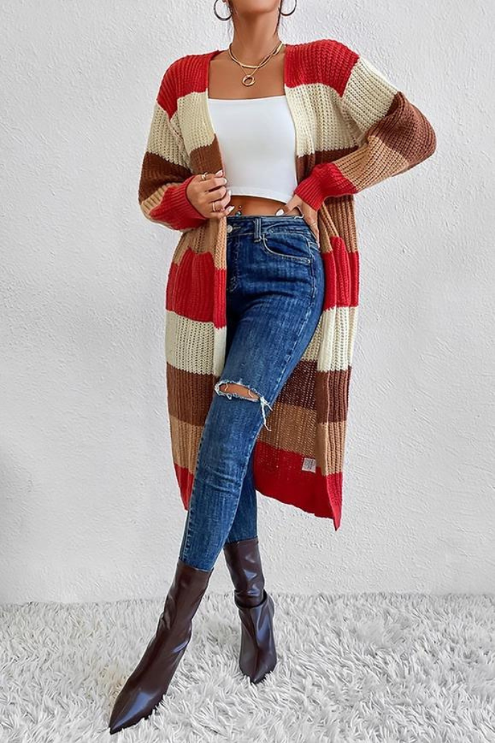 This multicolor 100% ACRYLIC knit is designed for women who are looking for an updated classic look. The long length emphasizes its stylish color blocking for a modern twist on timeless fashion. Perfect for a chilly day.
