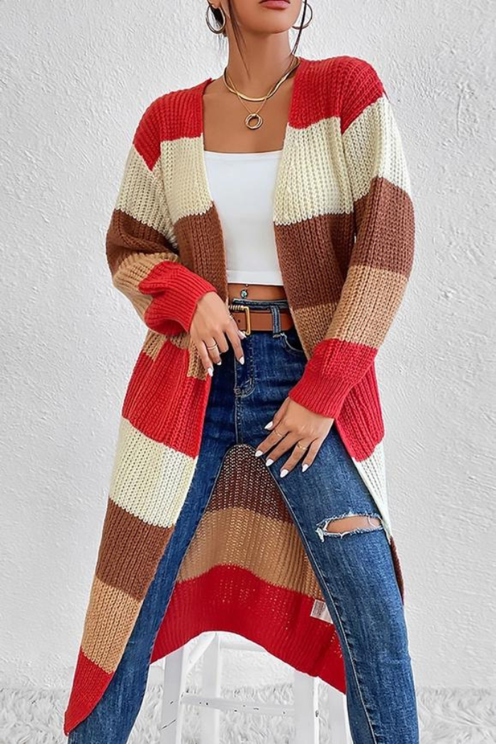 Women Color Blocked Long Length Knit