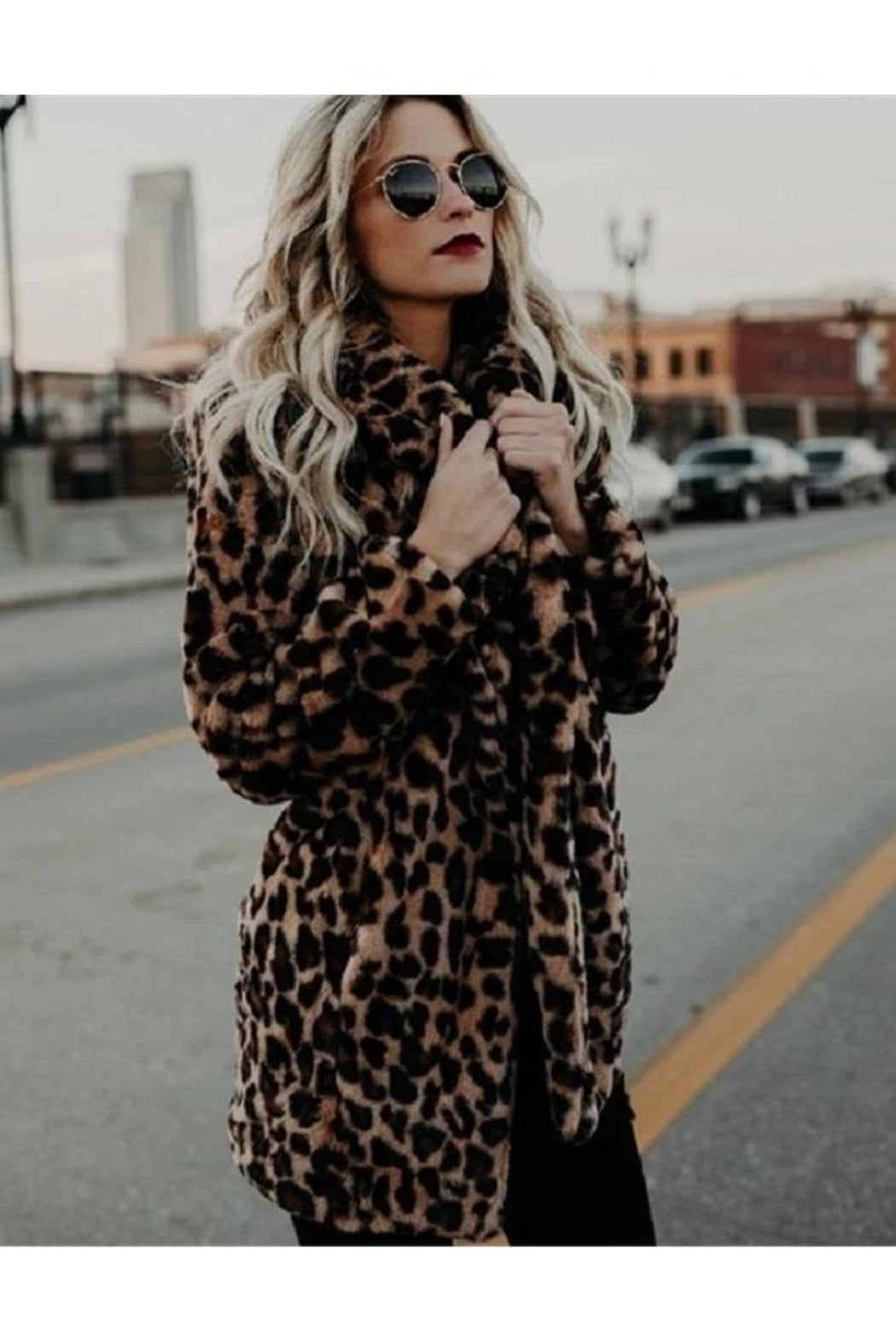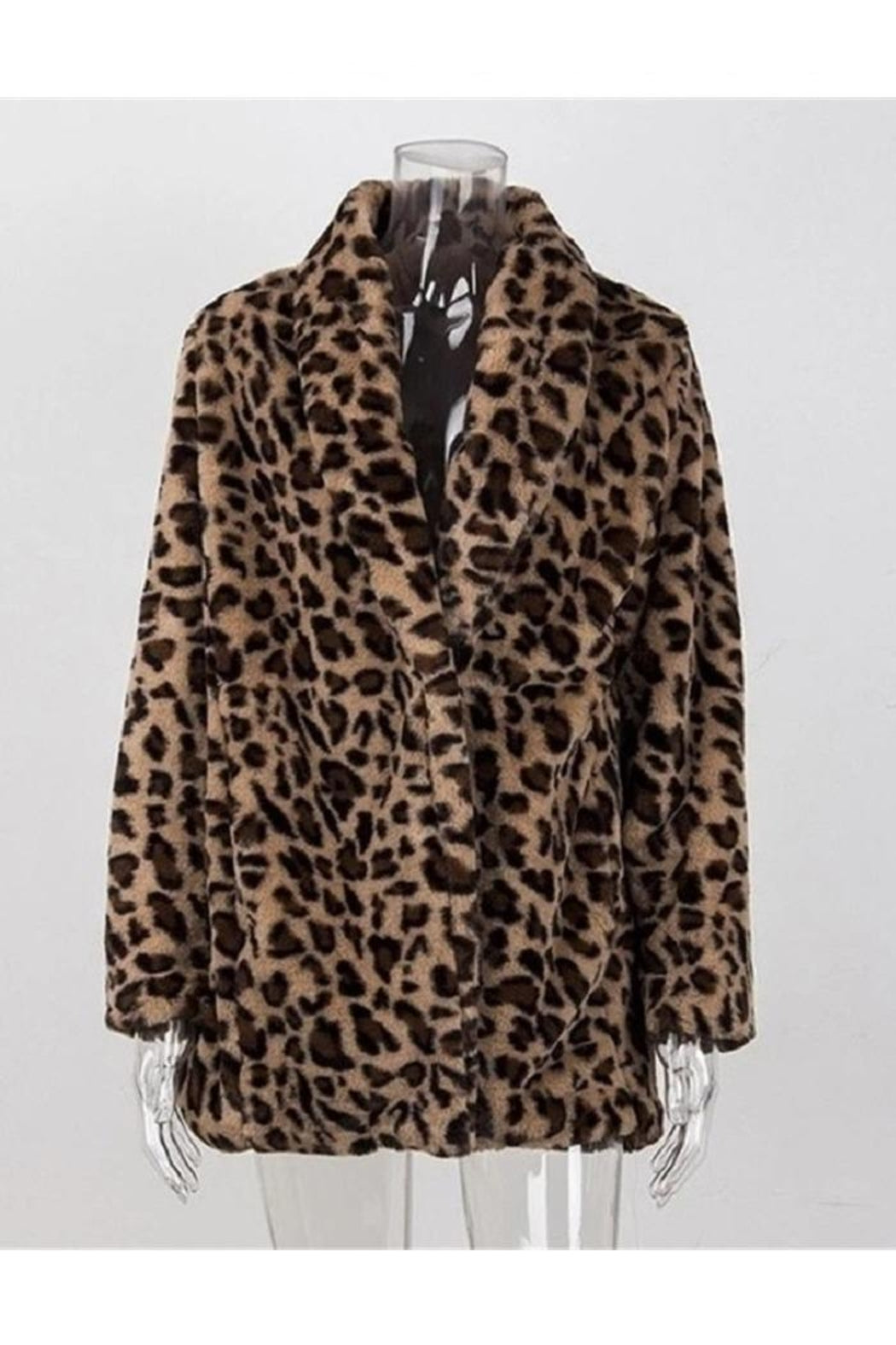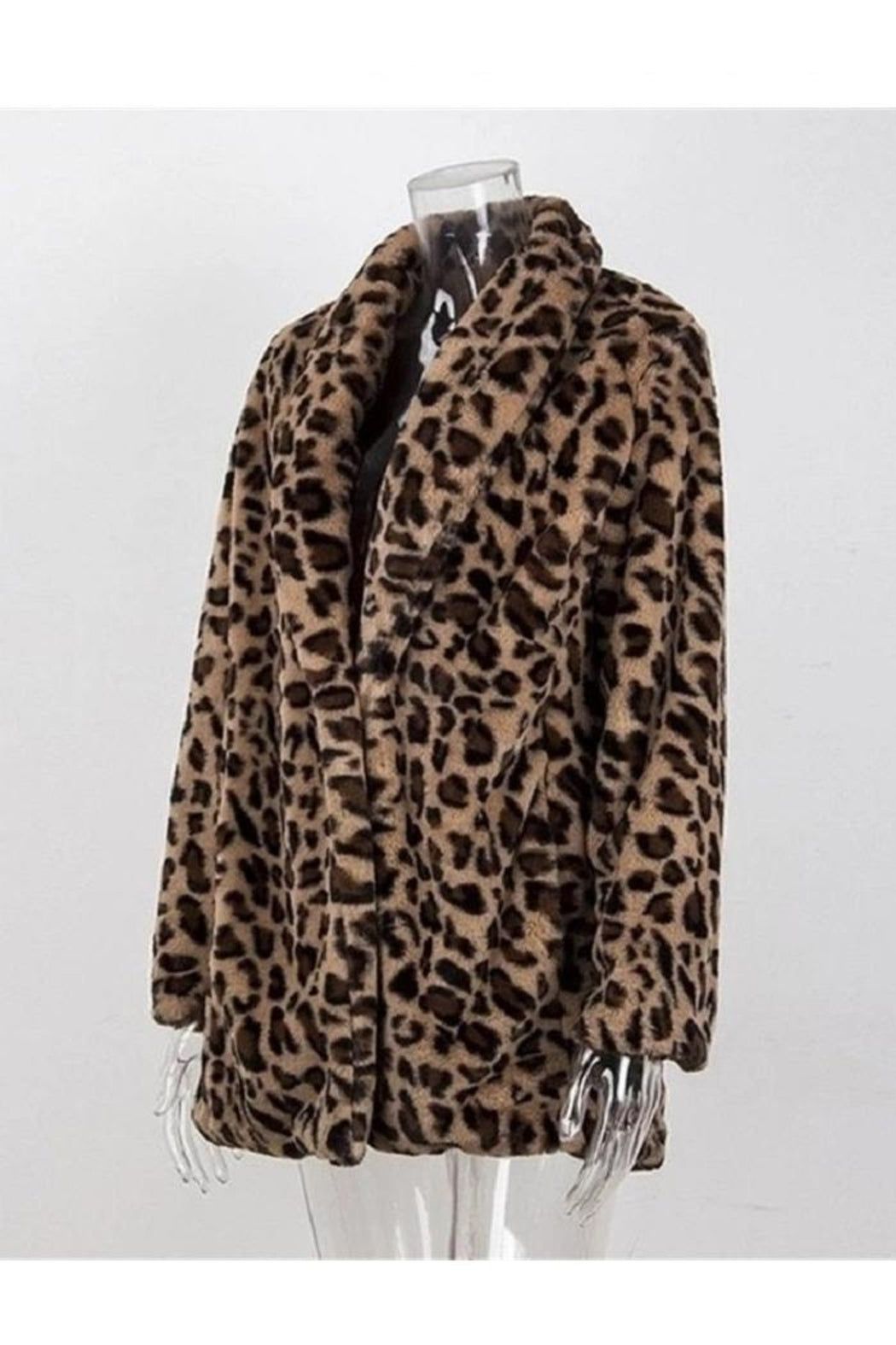Womens Faux Fur Leopard Print Winter Warm Jacket Trench Coat Fluffy Overcoat Top