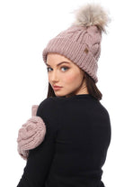 Women's Faux Fur Pom Beanie Hat with Sherpa Lining