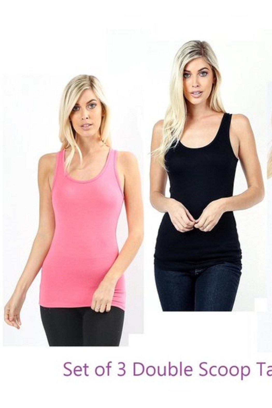 Women's Tank Tops - 3-Pack - Double Scoop Neck