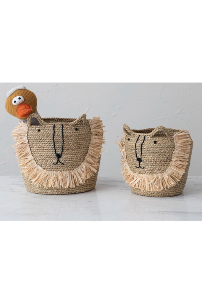 11-1/2" Round x 9"H Hand-Woven Seagrass Lion Baskets w/ Handles,