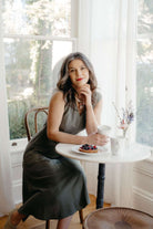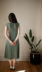 Made form deadstock 100% rayon challis in light sage green / blue color