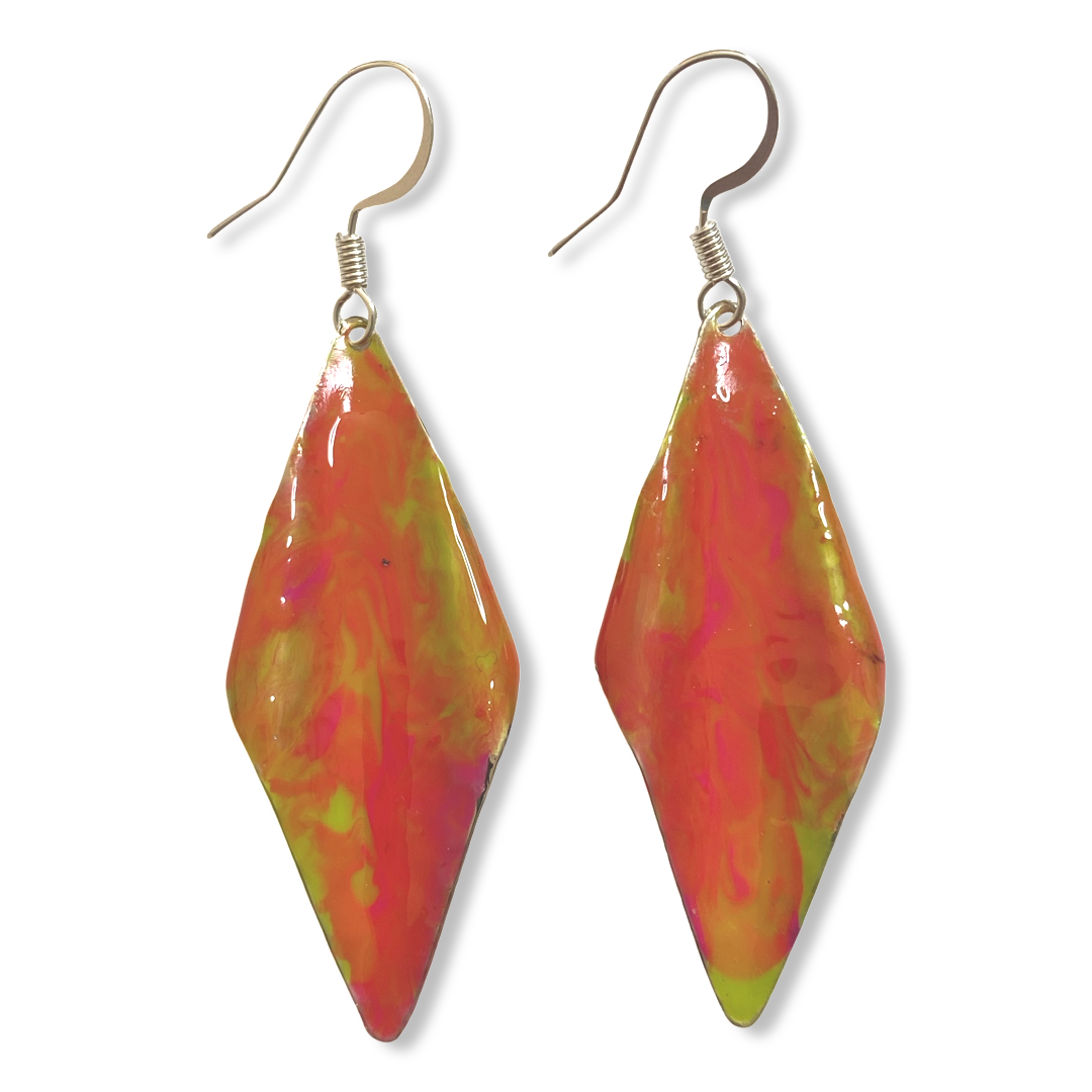 These hand painted yellow Orange marbleized wavy earrings are from our signature collection of Lures of Love Earrings.