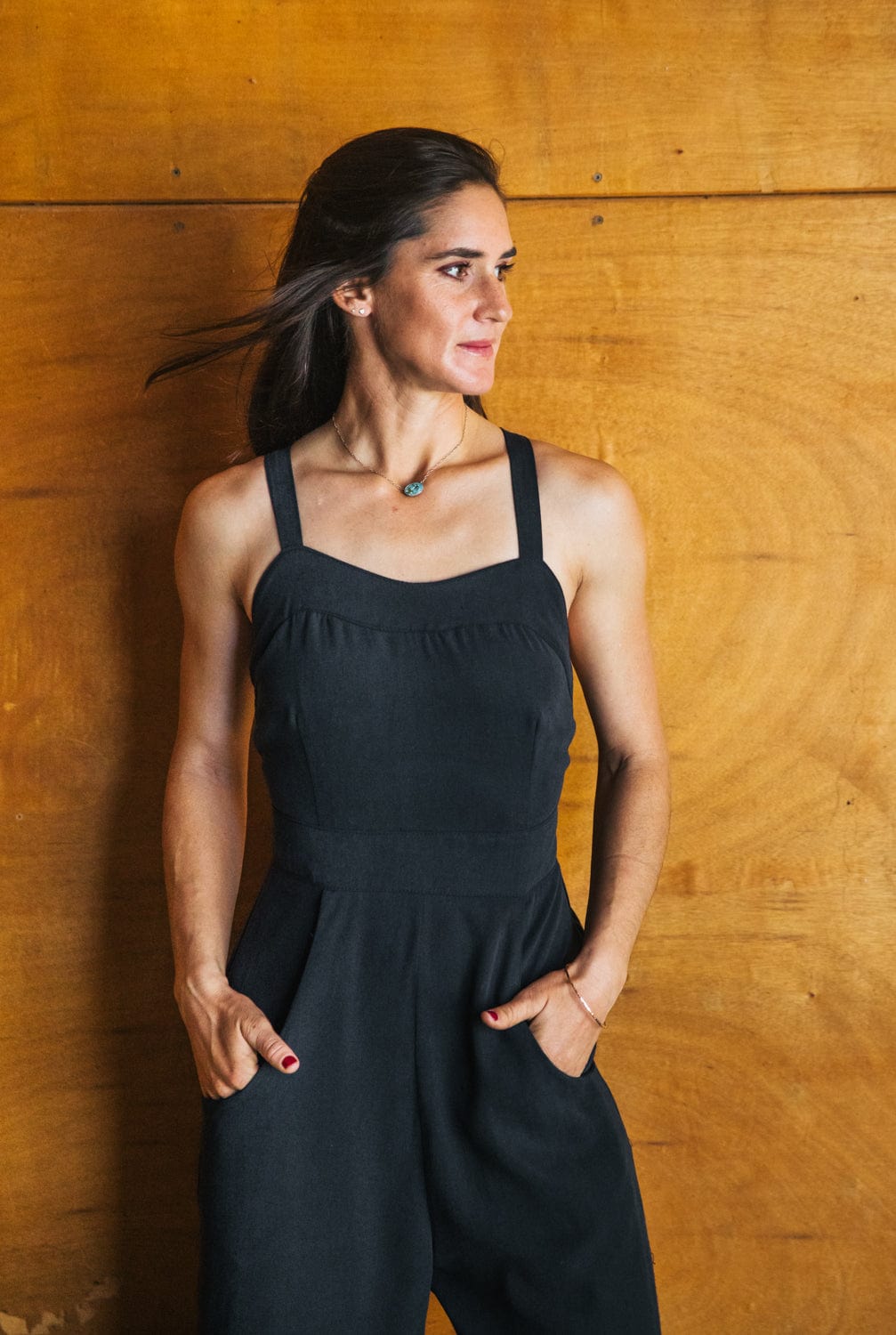 Yolked Juniper Jumpsuit in Black Brushed Cotton