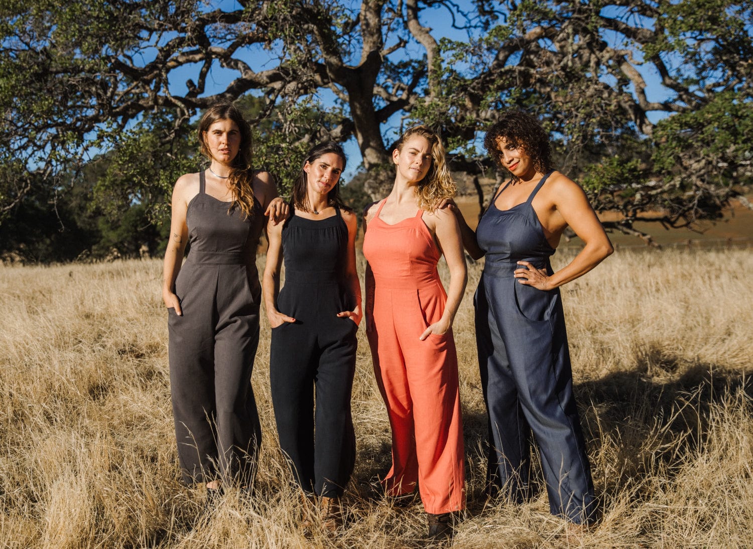 Fully adjustable strap length Criss crosses on the back, wide leg with lot of room for bootie. Deep pockets in the perfect place. Pair with a tank top, long sleeve, our mock crop top or nothing at all. Nylon zipper & adjustable sash closure. Perfectly transitions in to the changing seasons and loves to travel.