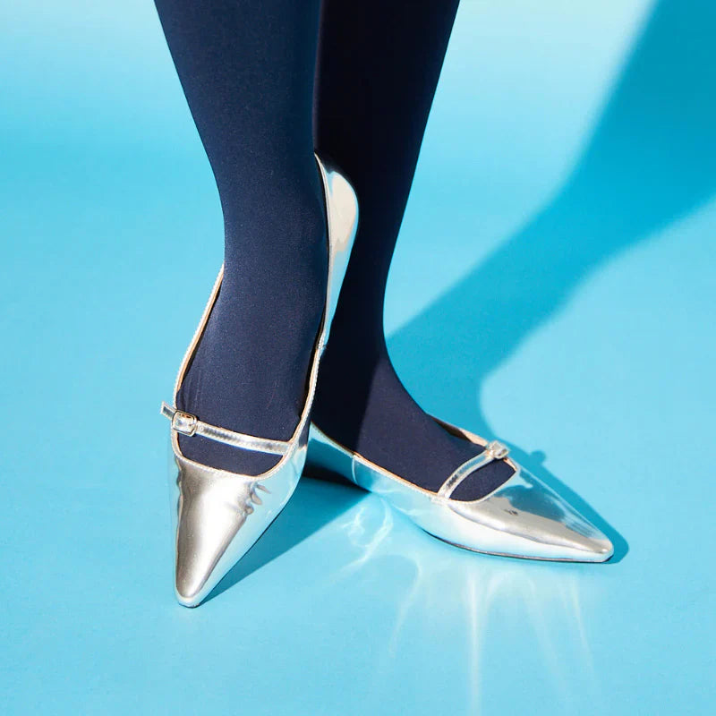 Stay cool and classic with the Victoria. Featuring a sharp pointed toe and a sleek Mary Jane strap with a chic buckle, this flat combines timeless sophistication with modern flair. Crafted in polished metallic leather, the Victoria is effortlessly polished, feminine, and perfect for adding a touch of elegance to any outfit.