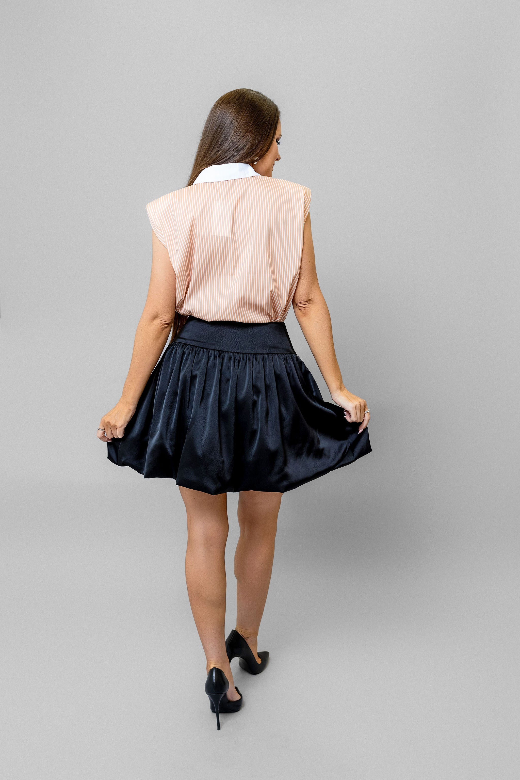 Introducing the Zane Skirt, a must-have for any fashion-forward individual. Crafted from a luxurious silky like fabric, this black mini skirt exudes sophistication and elegance. Adorned with a slightly ruffled skirt, gathered into a wide waistband, it adds a touch of femininity to any outfit. Elevate your style with this exclusive skirt. For detailed measurement please refer to our size guide or email/Call - modchiccouture@gmail.com / 8329257491. You can also send us DM on IG or FB