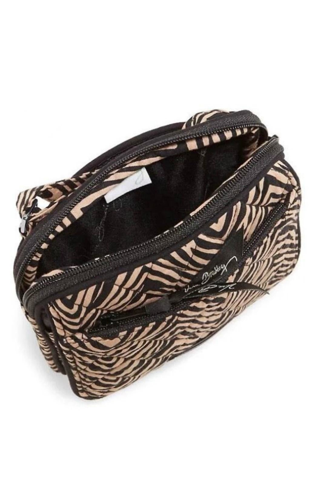 Meet the Vera Bradley Mini Hipster in the Zebra pattern! Considering that animal print is the new "neutral", this is a winner! With all the components of a wallet built right into the bag, this compact crossbody keeps essentials orderly and organized. It has a slip pocket on the back, six interior card slips, an ID window and zip coin pocket. It features a magnetic snap in front and a zip closure on top. Find other Zebra bags and accessories on the "Mimi's Gift Gallery" boutique page. ------- The dimensions are 6" wide x 7 ½" high x ¾" deep with a 56" adjustable strap.