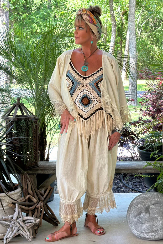 Introducing the Dahlia Alluring Romance Bed Jacket by Jaded Gypsy. Made from lightweight cotton with delicate lace trim, this jacket gives off Victorian vibes and pairs perfectly with our Zinnia Alluring Romance Bloomers. Cozy up and add a touch of romance to your outfits! The hardest question will be: Which color do you choose???