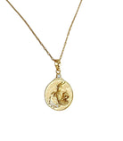 The Wild Zodiac Capricorn Necklace captures the essence of the Capricorn sign with an exquisite depiction of the fish-tailed goat. This intricate pendant features a 3D relief of the Capricorn symbol on one side and a constellation design with crystal 'stars' on the reverse, making it a statement piece for those born under this ambitious sign.