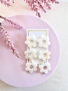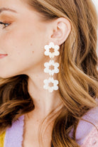 Introducing Zoey, a stunning and sophisticated accessory that will elevate any outfit. These earrings feature three delicate flowers, each handcrafted with intricate detail and finished with a polished shine.