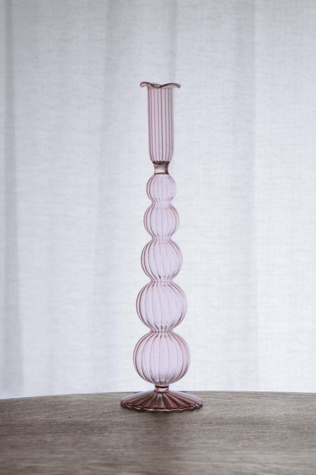 The return of opulence. Beatriz Ball celebrates Grandmillennial Style with the luxurious GLASS Cambridge Collection. Fresh and lively, the Cambridge Olivia 12" Candlestick Holder in light pink features five stacked fluted globes of glass, flirty curves, and a jewel-like brilliance and clarity, all atop a delightful raised base. Just the thing to liven up the table, the candlestick holders can be topped with tapers in fun colors, and mixed and matched with Olivia and other Cambridge designs of various hues. A great new addition to your home, the candlestick holders are sold as a set of two.